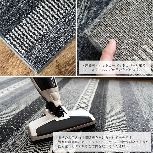 【備考】床暖房の上敷き、ホットカーペットカバー対応(季節に関係なくオールシーズン使えます。) / ※こちらの画像は、商品サイズ 133x195 cm を使用しております。 / 商品は[丸巻き]または[折り畳み]の状態でお届けいたします。