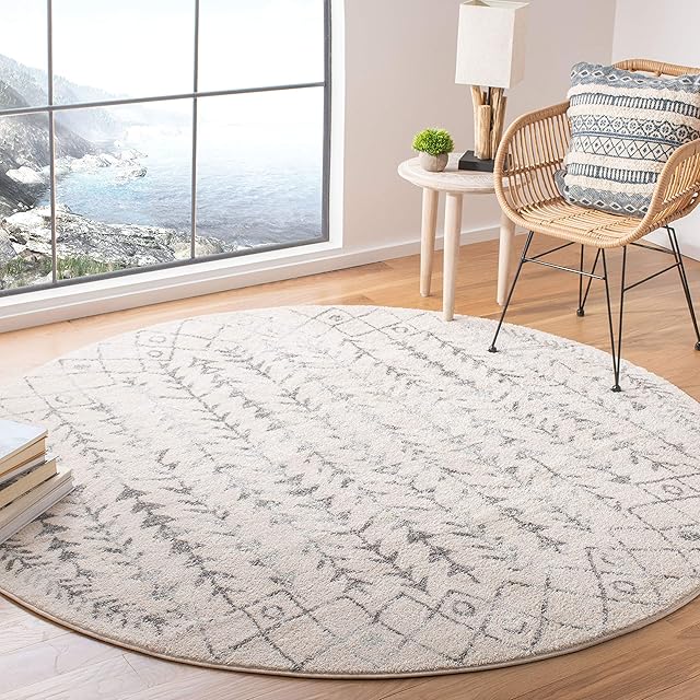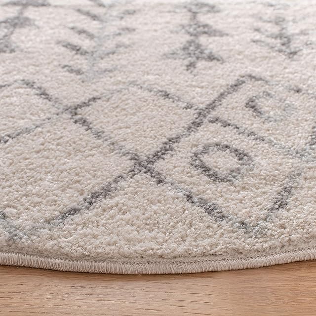 SAFAVIEH トゥルムコレクション 3フィート x 3フィート ラウンド アイボリー/グレー TUL262A モロッコ風 ボヘミアン アンティーク調 抜けない ダイニングルーム 玄関 ロビー リビングルーム ベッドルーム エリアラグ