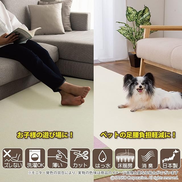 【日本製】 洗濯機OK(繰り返し使えます)、床暖房対応(推奨:低温)、ハサミでカット可能