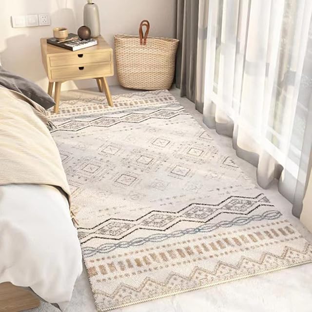カーペット 北欧レトロラグマット ヴィンテージ カーペット 幾何学模様 滑り止め100*160cm洗える おしゃれ吸水速乾 華麗なカシミヤ ふわふわした手触りオールシーズン適用 床暖房対応 掃除易い (100*160, D)