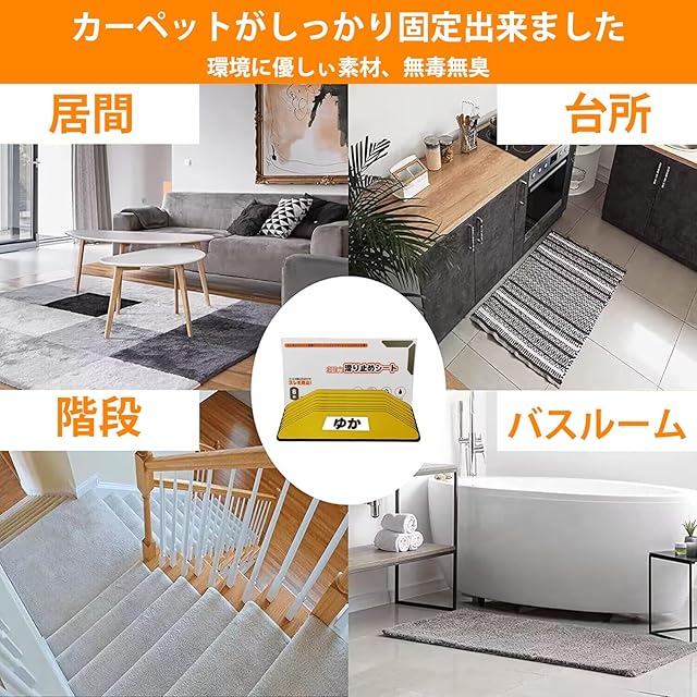 【幅広い用途】カーペットやラグ、キッチンマットの下に敷くだけでカーペットのずれを防止し、しわが出にくくなります。また、マットによる滑り落ち、転倒を防ぐ同時に掃除もしやすくなります。テーブルクロスや、ソファーカバー、ラグ、玄関マットおよび布団、マットレスの下敷きにも適しています,取り外すことができるシートで貼ってもマットは移動や掃除するとき、床にノリ跡なども残りません。床や敷物に損傷しません。
