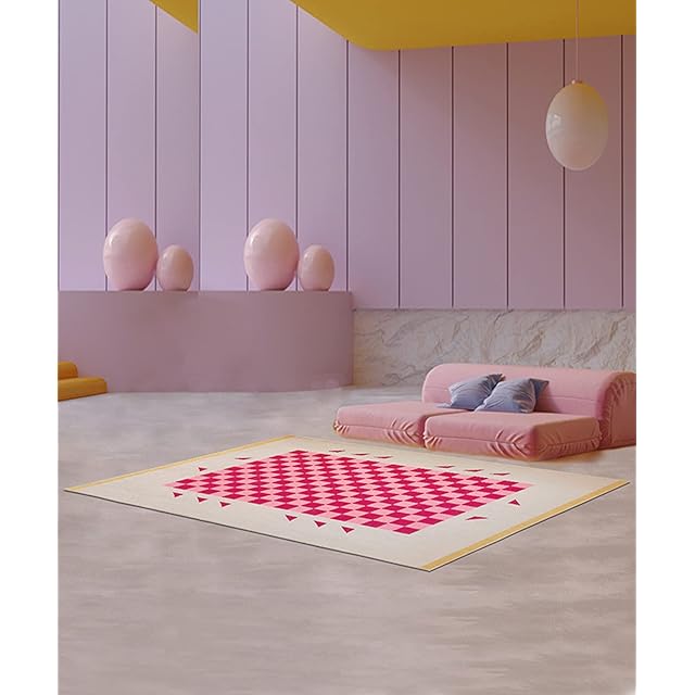 カーペット 絨毯 カーペット 市松模様 北欧 洗濯機で洗える 滑り止め付 防ダニ 抗菌 防臭 モダンシンプル(ピンク、40*60cm)