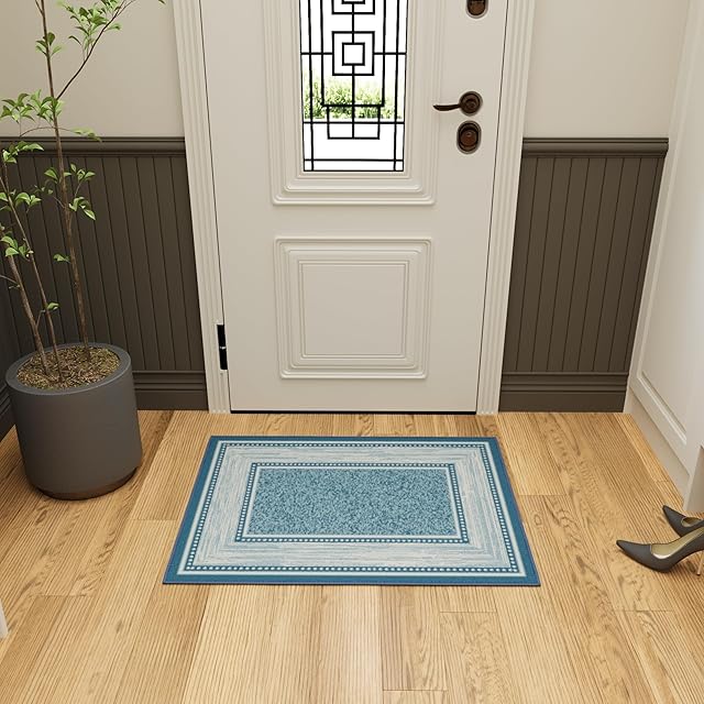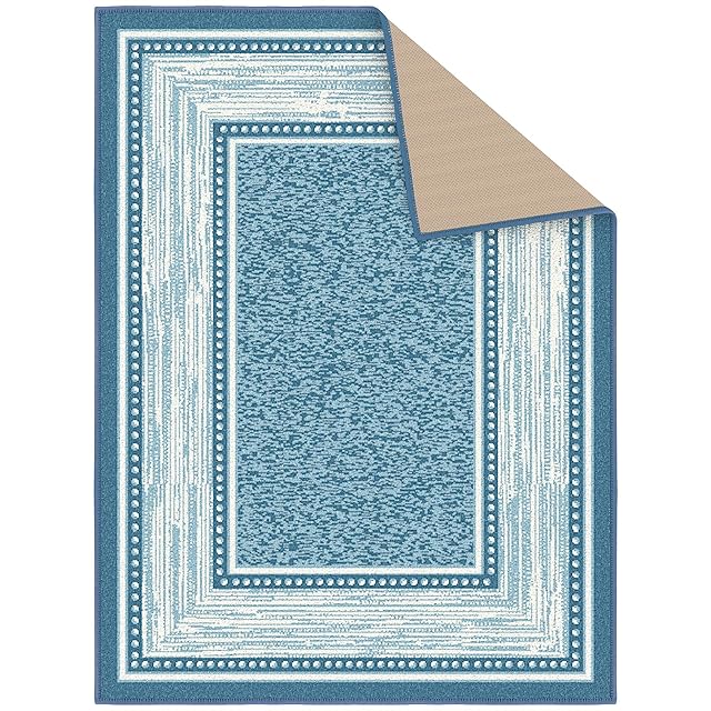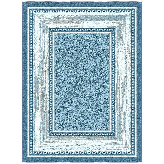 オットマンソン(Ottomanson) エリアラグ コンテンポラリーボーダーデザイン ブルー 裏面ゴム 69×91cm 【日本正規輸入品】