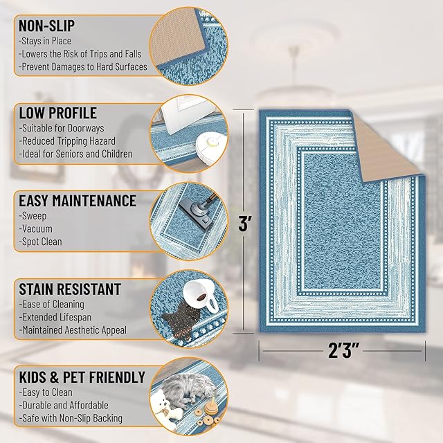 薄型:ランナーラグは、ペットや家族がつまずくことのないよう、薄型に作られています。薄型のラグは、冷たい床を暖かい空間にします