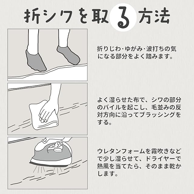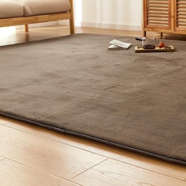 【短い毛足で簡単に掃除】カーペットの表面生地にはフランネル素材を使用し、繊細な毛先でやわらかく、滑らかな手触りを実現しました。短めの毛足でゴミが絡みにくく、一年中快適にお過ごしいただけます。