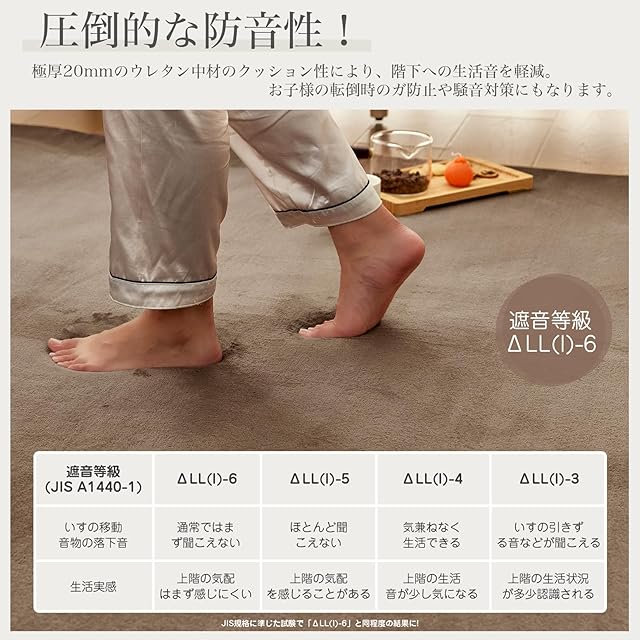 【防音・防臭】極厚ウレタンが生活音を吸収し、騒音トラブルの予防に。ご家庭や、肌の敏感な方にも安心してご使用いただける仕様となっています。