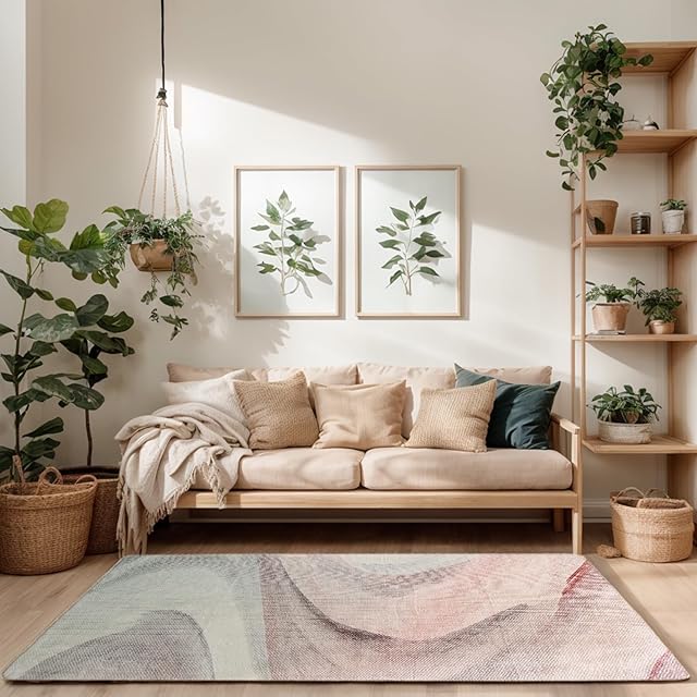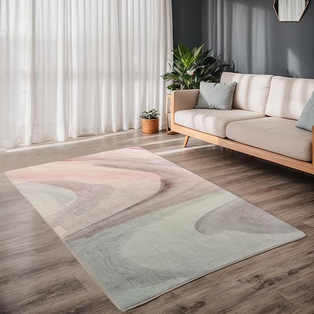 Calore カーペット ラグ ラグマート 絨毯 北欧 模造カシミヤ 防ダニ 抗菌 防臭 滑り止め 幾何学模様 耐久性 長方形 ホットカーペット 冷房対応 オールシーズン (グレー/ピンク, 200x300cm)