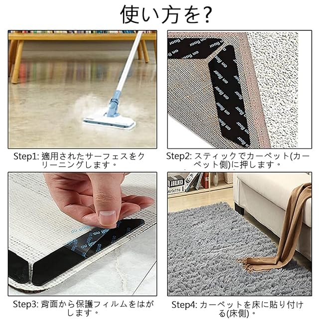 【多用途】カーペットやラグ、キッチンマットの下に敷くだけでカーペットのずれを防止し、しわが出にくくなります。また、テーブルクロスやソファーカバー、布団、マットレスの下敷きにも適しています。