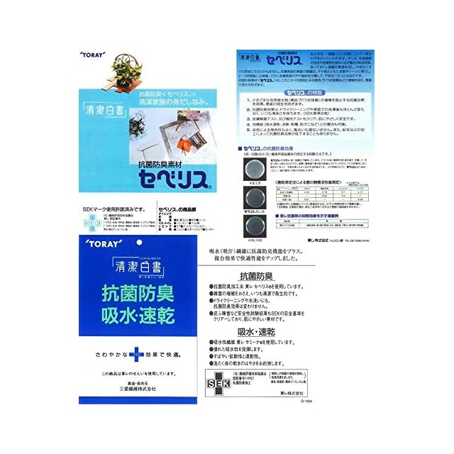 【抗菌防臭加工】抗菌・防臭素材の東レ セベリス(R)を使用。また、丸洗い可能のためご家庭の洗濯機でザブザブ洗え、いつでも清潔で快適にお使いいただけます。【水や汗を素早く吸収・蒸発】吸水・速乾素材の東レ サミーナ(R)により、水や汗を素早く吸収・蒸発させますので、とても肌触りがよく、お手入れやお洗濯も簡単です。