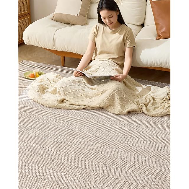 VK Living ラグ カーペット 春 夏 190X240cm ラグマット 3畳 【大人の雰囲気 ヘリンボーン柄】 オールシーズン おしゃれ 絨毯 北欧 リビング マット 滑り止め 幾何柄 オールシーズン適用 床保護 防音 モカ