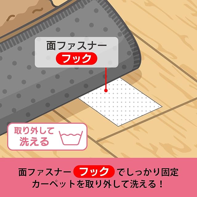【取り外して洗える】床側にテープがついているので、カーペットをはがして洗濯できる!