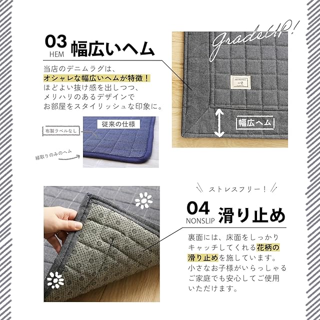 フリーリー ラグ カーペット 綿100% 130×185cm キルティングラグ 洗える デニム調 ラグマット 洗える 絨毯 じゅうたん オールシーズン (Sサイズ・ライトモカ)