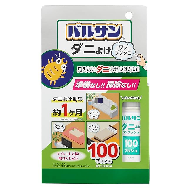 バルサン ダニよけ ワンプッシュ (100プッシュ 最大100㎡分) / ダニよけ効果1ヶ月 / ふとん ソファ カーペット に/見えないダニをよせつけない エアゾール