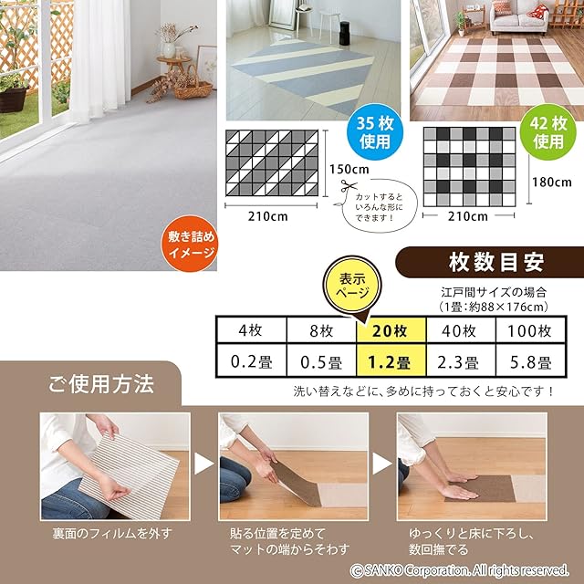 【1.2畳分】 サイズ : 20枚組〈約1.8㎡〉 30×30cm(厚み4mm)、重量:50g(1枚)
