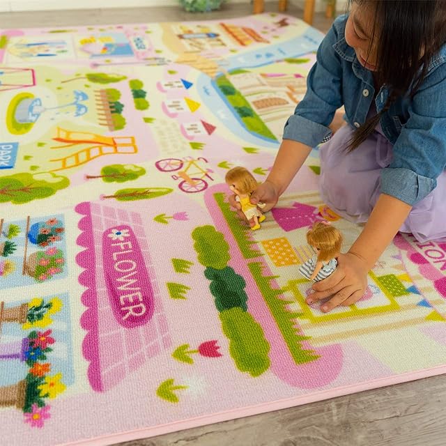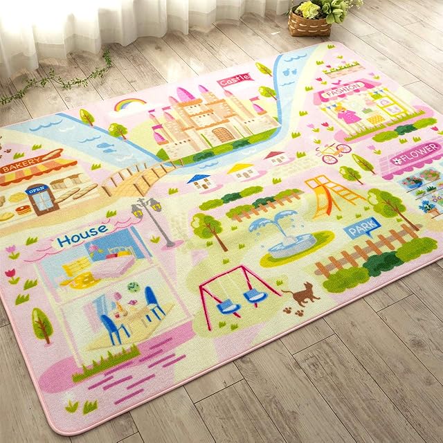 サヤンサヤン キッズ 子供 女の子 洗える ラグ ロードマップ ガール 110x130 1畳 ピンク