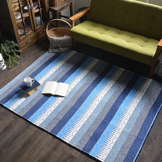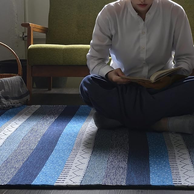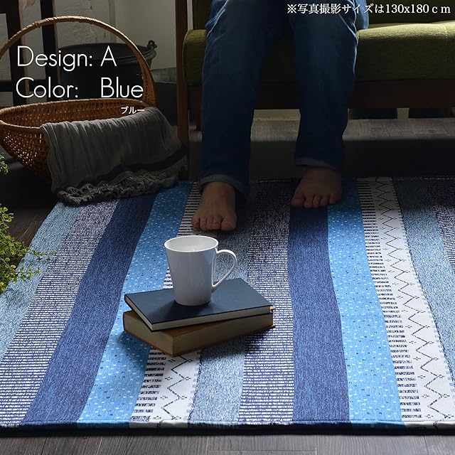 RUGS‐FACTORY 洗える ラグ ラグマット 1.5畳 夏用 プリラグ 130x180cm A ブルー