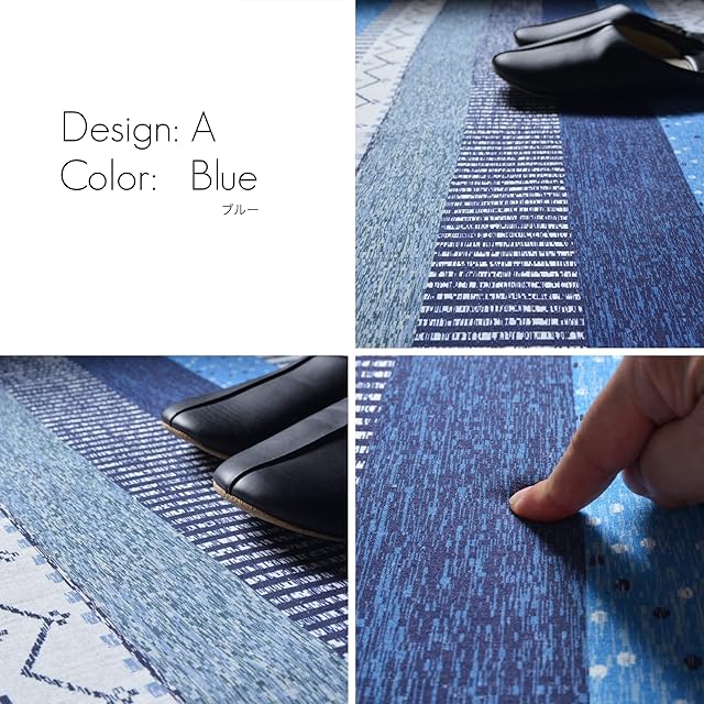 ラグマット 夏用 ラグ プリントラグ 不織布すべり止めつき Aブルー