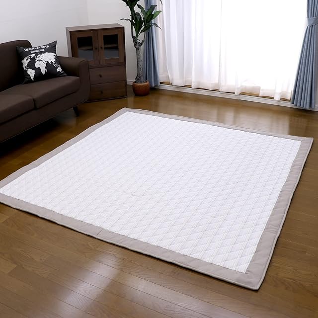 ・[品名]しじら織りラグマット [サイズ]190×190cm [素材]表地:綿100%、中材:ウレタンフォーム/綿 裏面:不織布(滑り止め加工付)