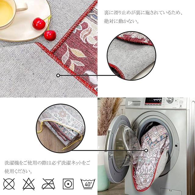 滑り止め加工:裏にPVCの滑り止めが裏に施されているため、動かにくい。走り回る小さなお子様やペットがいるご家庭にも安心です。