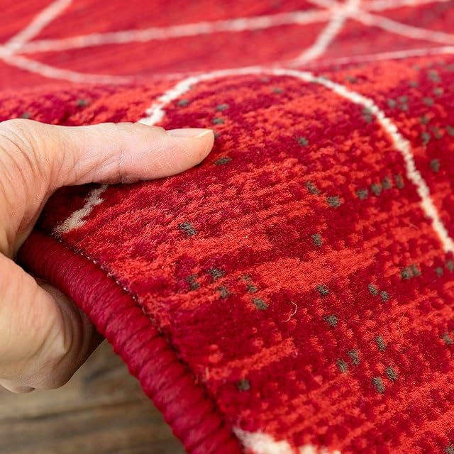 サヤンサヤン 幾何学 ベニワレン調 ラグマット ハイクライス 80x150 1畳 レッド ウィルトン