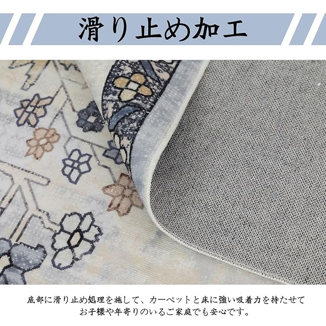 DECOMALL ペルシャ風 洗える ラグ カーペット 3畳 ダイニングラグ 絨毯 200*250cm オールシーズン適用 床暖房対応 滑り止め 折り畳み可能 軽量設計 抗菌防臭 防音 ブルー