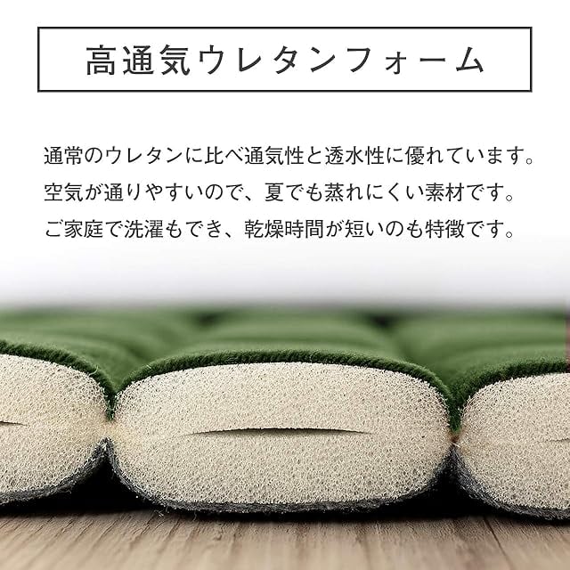 【組成】<表面>ポリエステル95% / ポリウレタン5% <中材>2層ウレタンフォーム <裏面>ポリエステル100%(不織布))