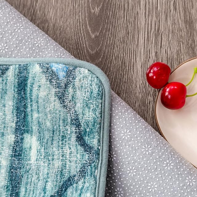 DECOMALL キッチンマット 180 洗える 廊下 カーペット 60x180CM 北欧 おしゃれ オールシーズン 滑り止め付 撥水 厚手 ふわふわ 低反発 台所 マット 床暖房対応 絨毯 グリーン 防ダニ 防臭
