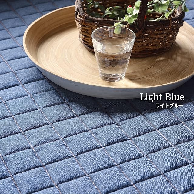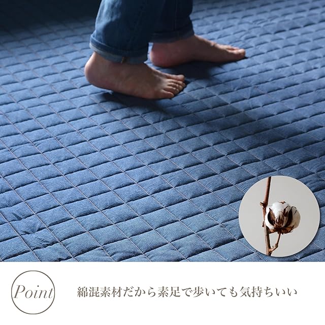 綿 コットン 54% ポリエステル46%のデニム生地のラグマット。デニム生地 洗える キルト ラグマット シンプル で おしゃれ な かわいい ラグ 西海岸 男前 北欧 イテリアはもちろんいろんなインテリアに合わせやすいラグ ウレタン 入りで 厚手 の ラグ