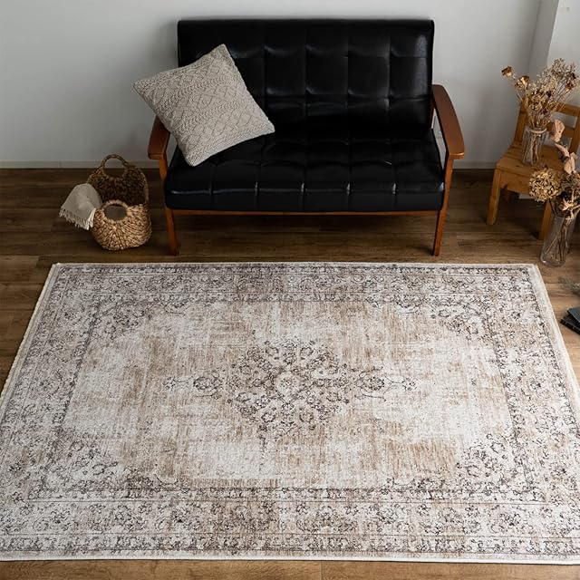 サヤンサヤン ヴィンテージ風 クラシック柄 シャルム ラグマット 1.5畳 140×200 ベージュ