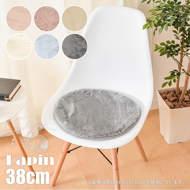 萩原 チェアパッド グレー 直径約38cm 「ラパン」 ふわふわ極上タッチ 姫系 ホットカーペット・床暖房対応