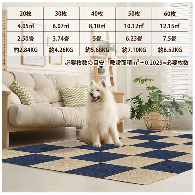 滑り止め タイルカーペット ジョイントマット タイルマット吸着マット【45×45cm 】床保護 ずれない 吸着マット 防音 床暖房にも対応 洗える カット可能 カーペット 高齢者/お子供/ペット滑り止め 対策 吸着カーペット