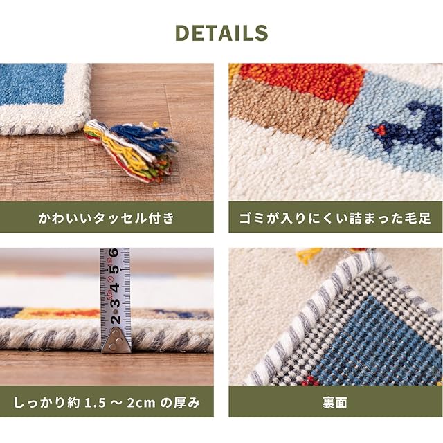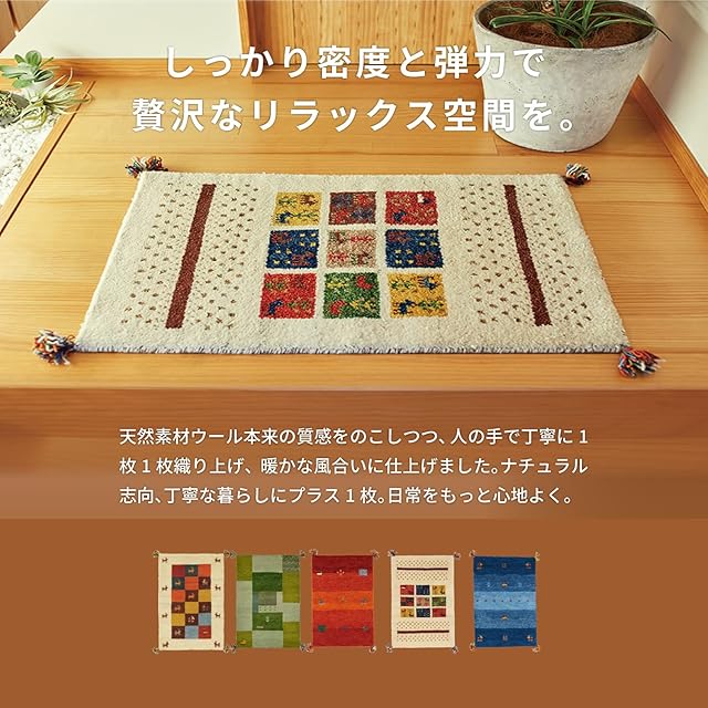 萩原 ギャッベ 玄関マット 屋内 約45X75cm 「GABBEH D19」 羊毛 手織り 厚手 270034510