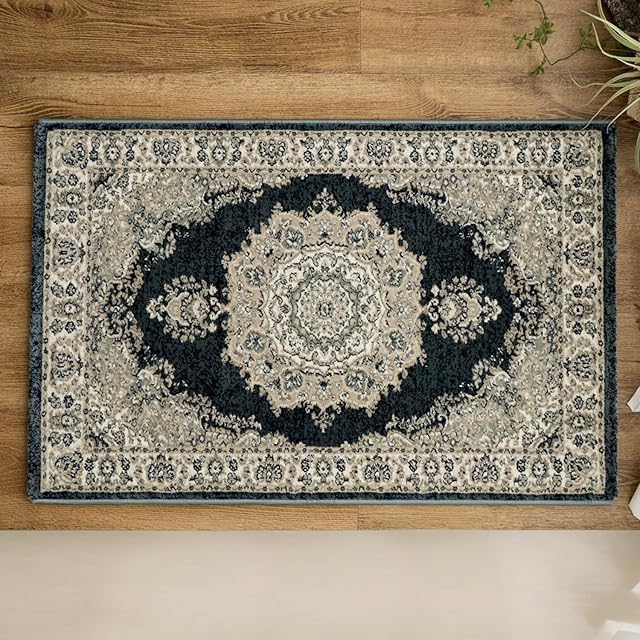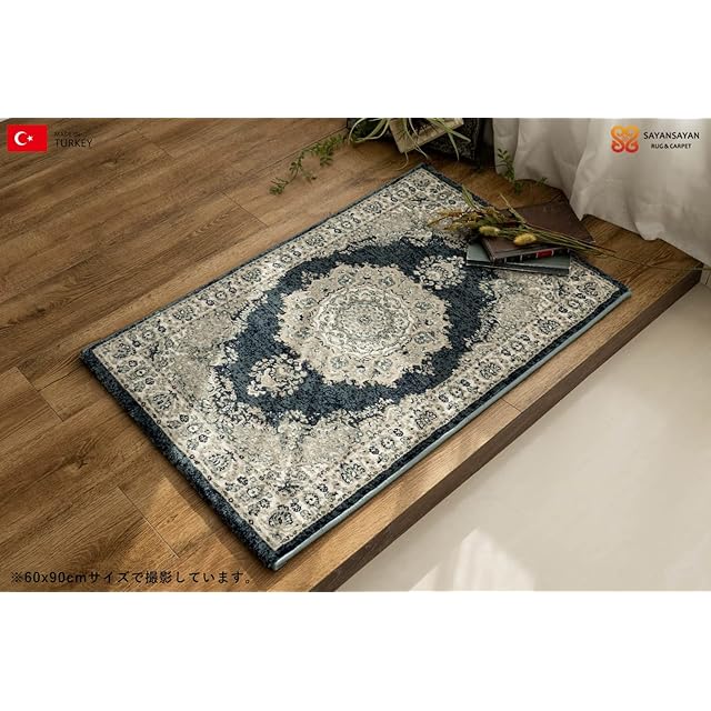 サヤンサヤン クラシック柄 玄関マット リープ メダリオン 室内 50×80 ブルー 75万ノット