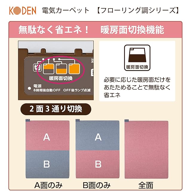 広電(KODEN) 電気カーペット ホットカーペット フローリング 176×176cm 2畳 ブラウン 防水 キッチン対応 省エネ スライド温度調節 CWC201H-BW