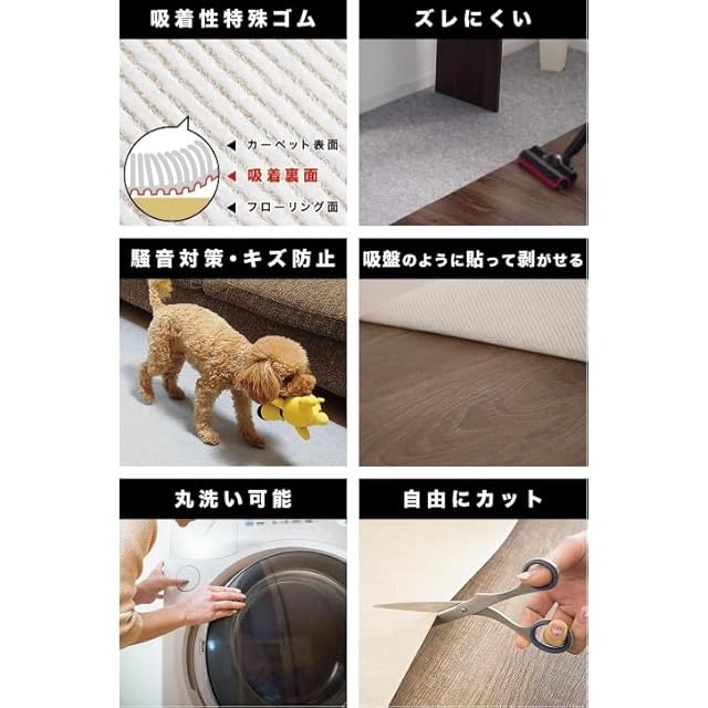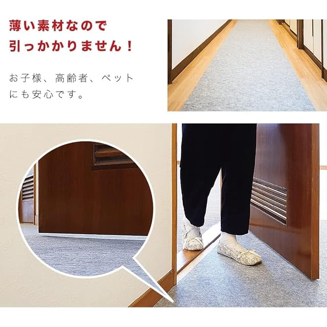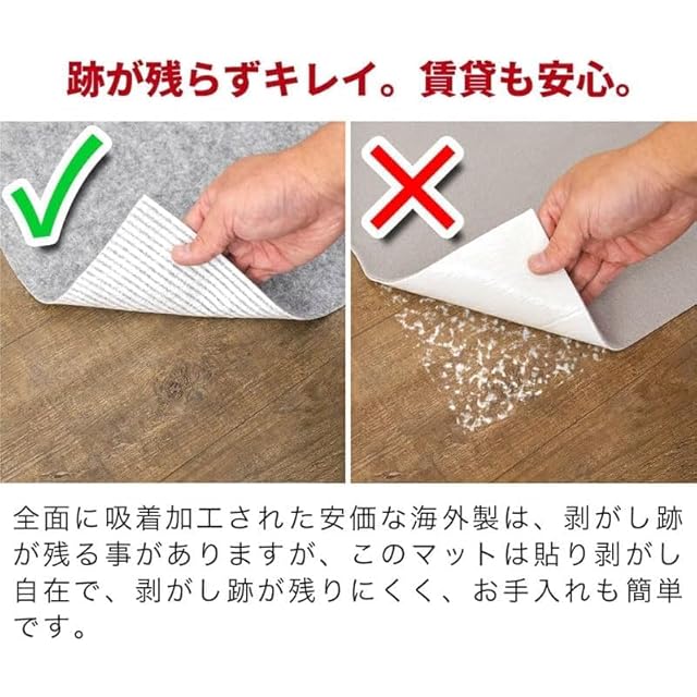 シンプルでどこでも使える、吸着すべり止めロールカーペットです。裏面は特殊吸着加工で床にピタッと吸着。簡単に外せて跡も残りません。