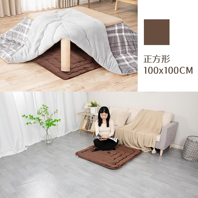 JEMAジェマ こたつ敷き布団 中敷 マット 敷パッド こたつペット ラグ こたつ下敷き パット ラグマット 極厚 厚手 ホットカーペット対応 蓄熱 正方形 すべり止め 暖かい ウォーム 冬用 滑り止め付き ふわふわ リビング ブラウン 約100x100cm