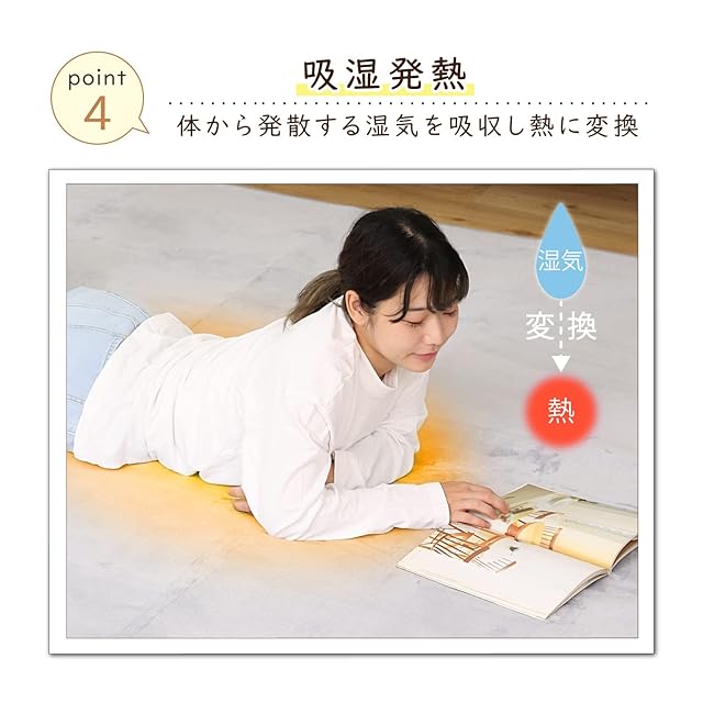 【吸湿発熱効果・抗菌防臭加工済】:吸湿することで発熱しあったかい。細菌の増殖を抑制し臭いを抑える防臭・抗菌加工済み。