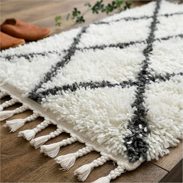 【サイズ】約 60x90 cm / 長方形 【カラー】クリーム / (房込み 60×108cm前後) ※表示サイズより数cmの誤差がある場合がございますのでご了承ください。