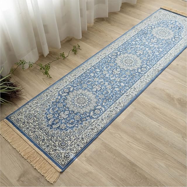 【サイズ】約 50х180 cm( 房込みサイズ 約 50x195 cm ) / ロングタイプ(廊下敷き・キッチンマット) 【カラー】ブルー