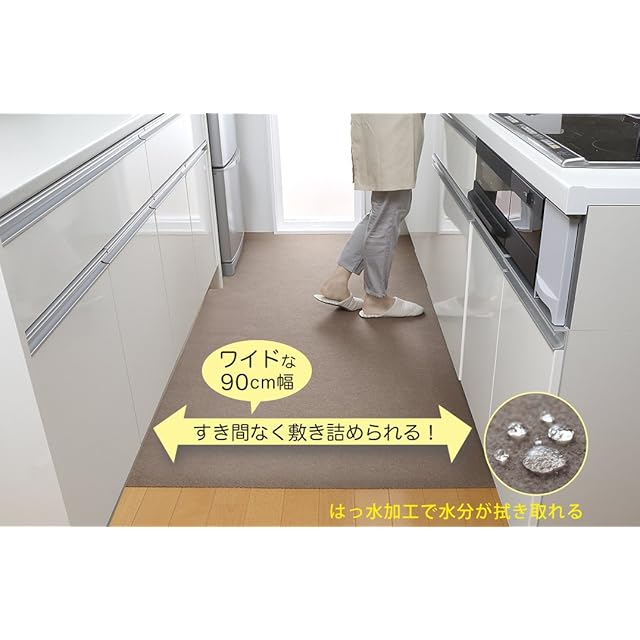 Sanko サンコー キッチンマット はっ水 洗える ロングマット 台所 廊下 日本製 おくだけ吸着 フラットタイプ 90×180cm ブラウン KH-84
