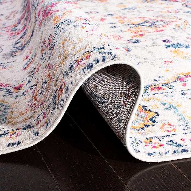 SAFAVIEH マディソンコレクション 2フィート3インチ x 20フィート フクシア/アイボリー MAD603R オリエンタル スノーフレーク メダリオン アンティーク調 抜けない リビングルーム ベッドルーム ランナーラグ