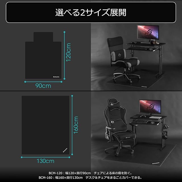 【デスクまでフルカバー】大型デスク&チェアをまるごとカバーする超大判仕様。「デスクごと」タイプは130×160cmと、さらに大きくなった160×180cmの2サイズから選べます。