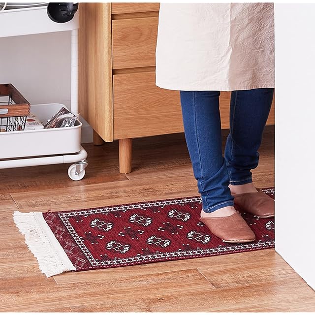 伝統的なトルクメン絨毯を再現した玄関マット。毛足がほとんどないため、さらっとした手触りです。ゴミが溜まりにくくお手入れも簡単。また、洗濯機で洗えるので汚れても清潔にお使いいただけます。玄関やベッドサイド、キッチンなどの水回りにもどうぞ。