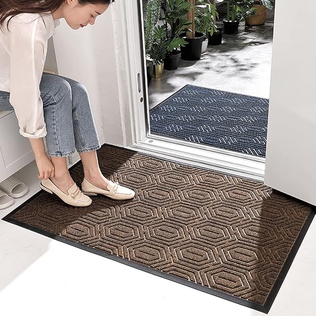 玄関マット 屋外 おしゃれ 泥落としマット 滑り止め ドアマット 室内 業務用 スタンダードマット 家庭用 カーペット 耐磨耗性 マット シンプル 防塵 耐久性 店舗 デパート 会社 事務所 オフィス お手入れ簡単 (ブラウン・45×75cm)