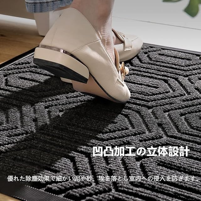 【泥落としマット】ドアマットの表面は凹凸加工の立体設計で、屋内に持ち込みたくないホコリ、砂、汚れや水などをしっかり捕らえ、吸収する機能的なマットです。室内を清潔に保つことができる。