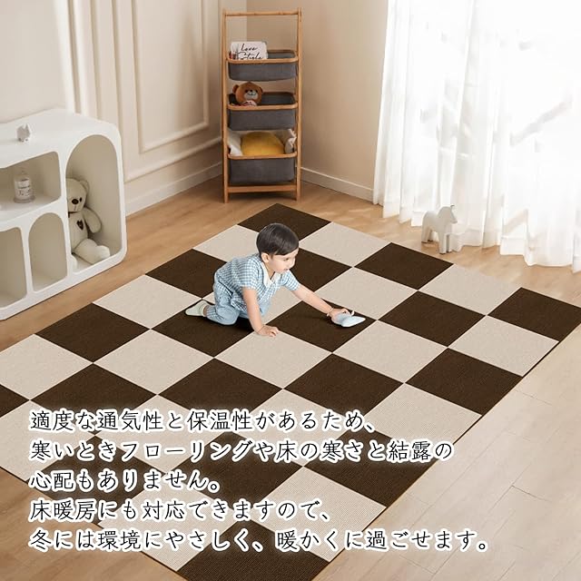 セリオン ジョイントマット タイルカーペット タイルマット ずれない 吸着マット 防音 床暖房にも対応 洗える ペット用 床保護 チェアマット ズレにくい カット可能 ペット猫犬用 掃除ラクラク 高齢者滑り止め対策 【30*30cm*12枚入り】色:ベージュ*ブラウン