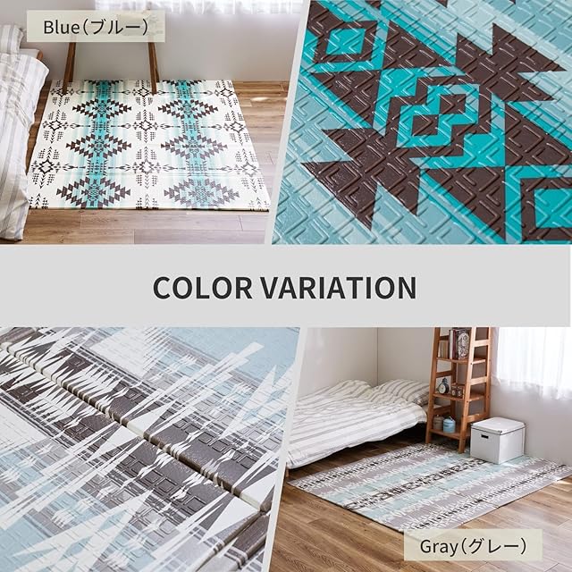 萩原 ラグ クッションプレイマット ブルー 約148×196cm 「エクスキリム」 撥水 水洗いOK 両面仕様 コンパクト収納 袋付き
