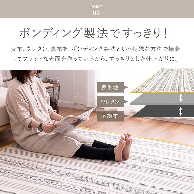 絶妙な色合いで空間にこなれたオシャレ感を演出してくれる「アルト」シリーズのボンディングラグ。四隅に付いたタッセルもポイントです。洗濯機で洗えるので汚れてもラクして清潔にお使いいただけます。小さいお子様がいるご家庭にもおすすめです。