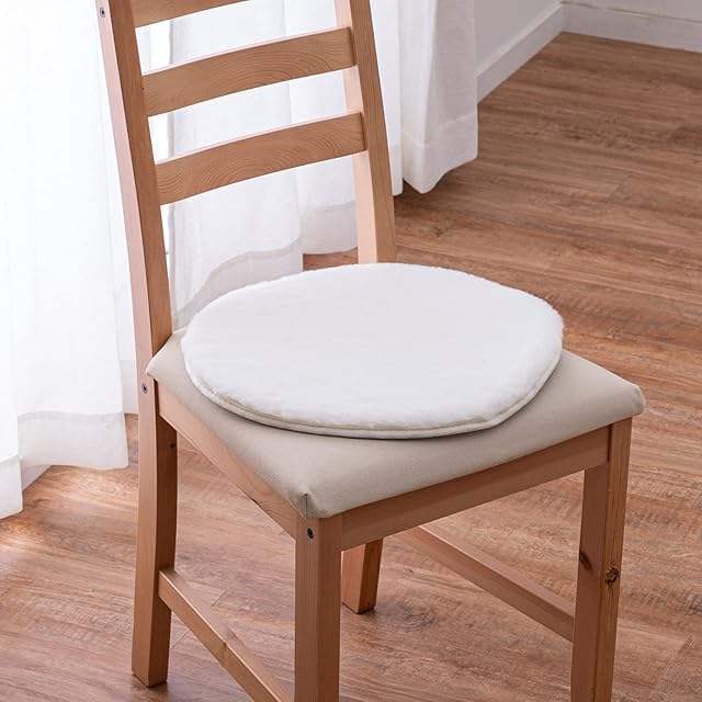 萩原 チェアパッド アイボリー 直径約38cm 「ラパン」 ふわふわ極上タッチ 姫系 ホットカーペット・床暖房対応