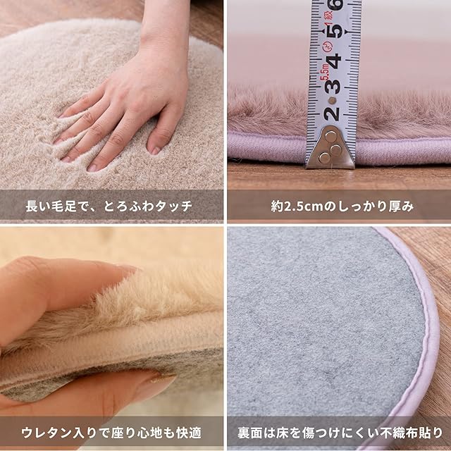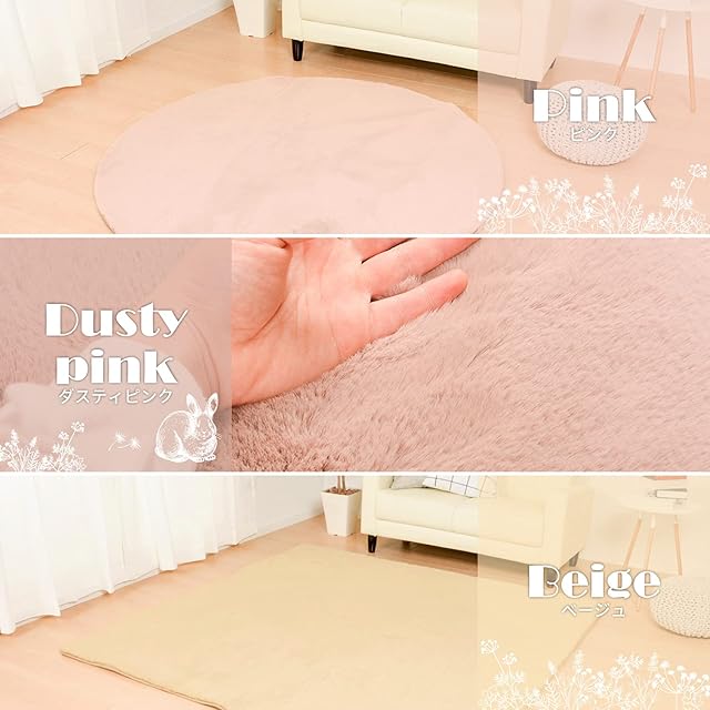 とろけるようなやさしい肌触りを追求しました。まるで本物のウサギを撫でているようななめらかでとろけるようなタッチ感です。色味をおさえたダスティなカラー展開と角形と円形の多サイズ展開も魅力です。北欧系や姫系なお部屋づくりはもちろん、大人可愛いおしゃれなお部屋づくりにも活躍してくれそうな一枚です。